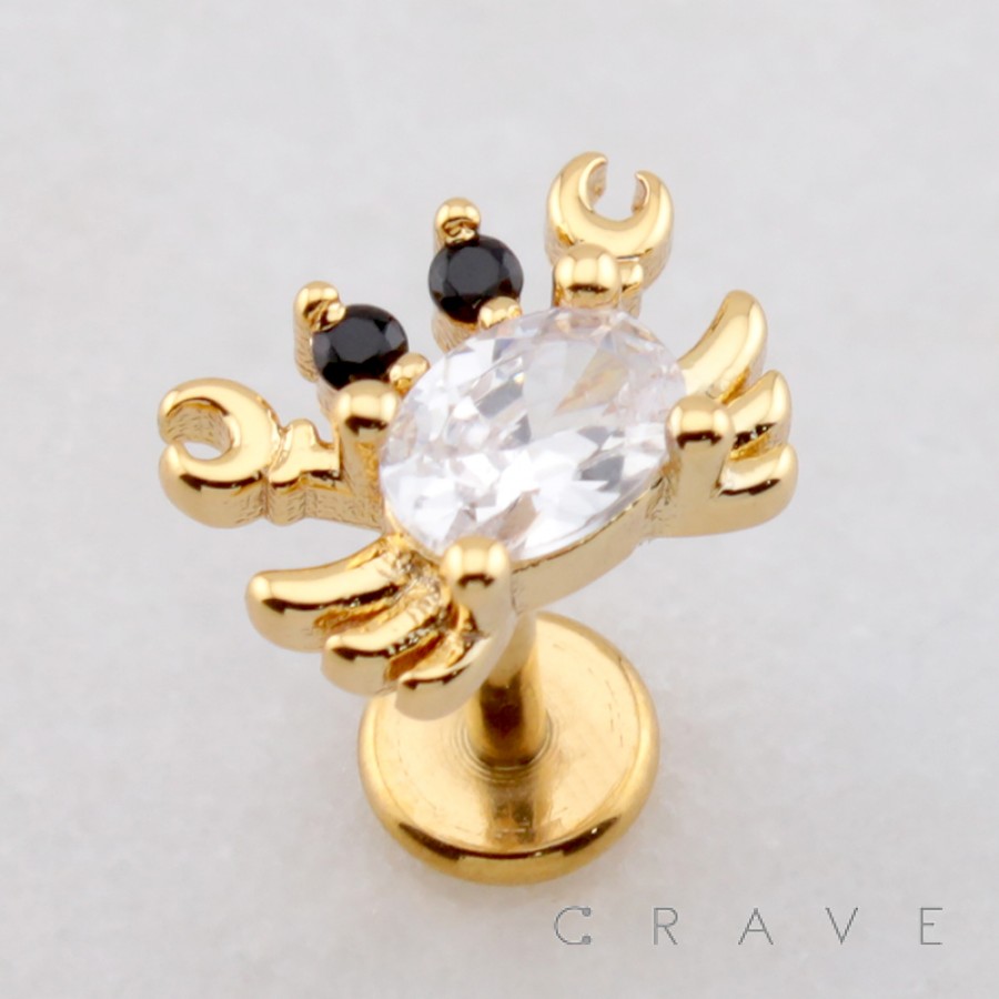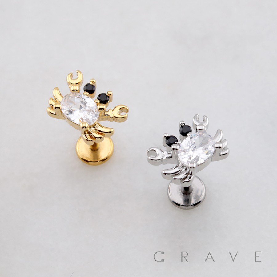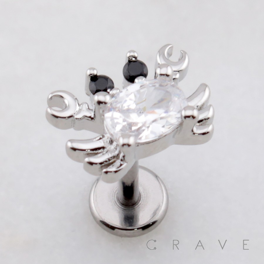 CRABBY CRAB CZ THREADLESS (PUSH IN) 316L SURGICAL STEEL LABRET SET