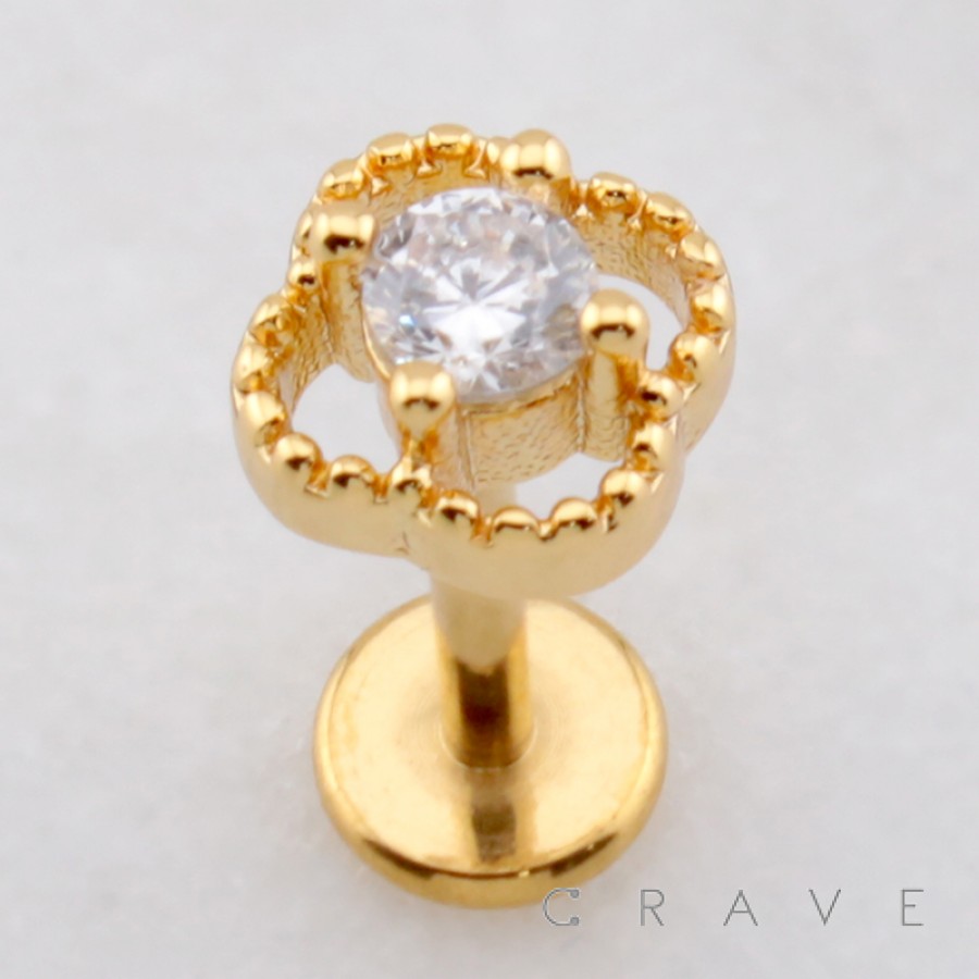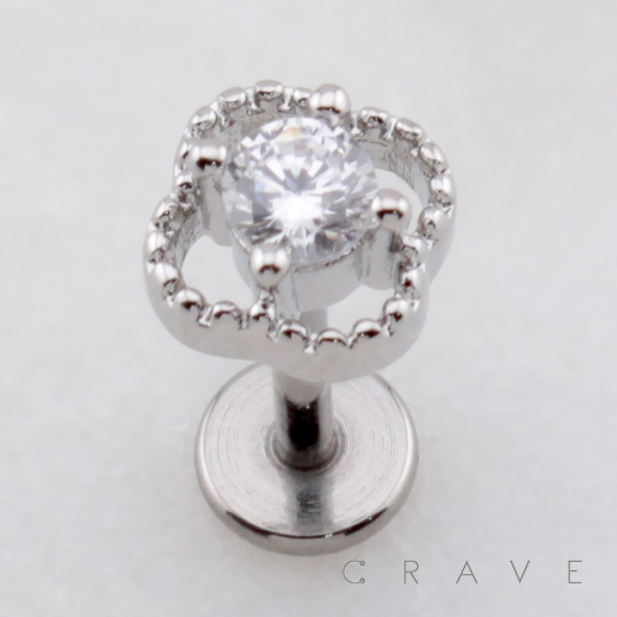 MULTI CZ CLOVER FLOWER THREADLESS (PUSH IN) 316L SURGICAL STEEL LABRET SET