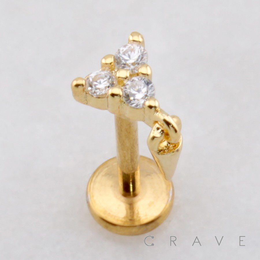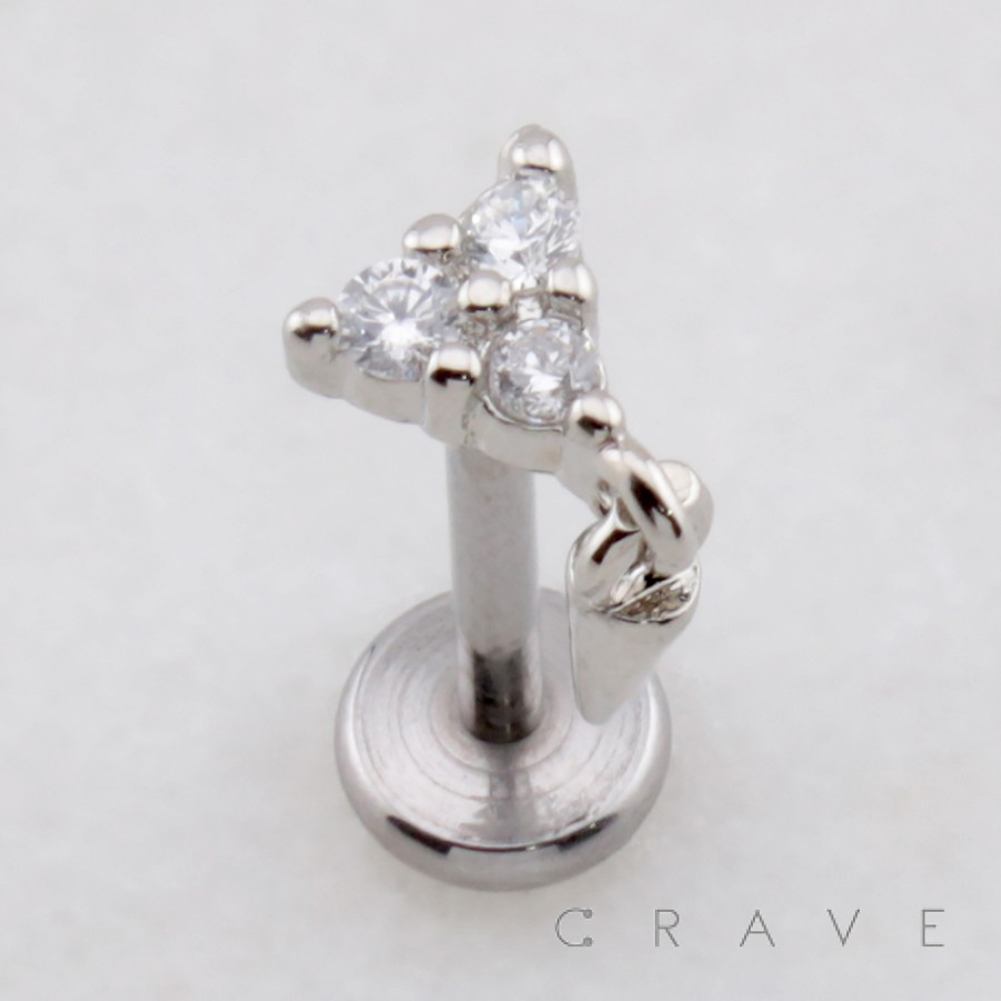MULTI CZ TRIANGLE PYRAMID DANGLE SPIKE CONE THREADLESS (PUSH IN) 316L SURGICAL STEEL LABRET SET