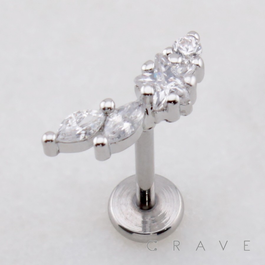 MULTI CZ CRESCENT STAR COMET MARQUISE BEZEL THREADLESS (PUSH IN) 316L SURGICAL STEEL LABRET SET