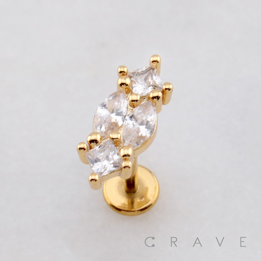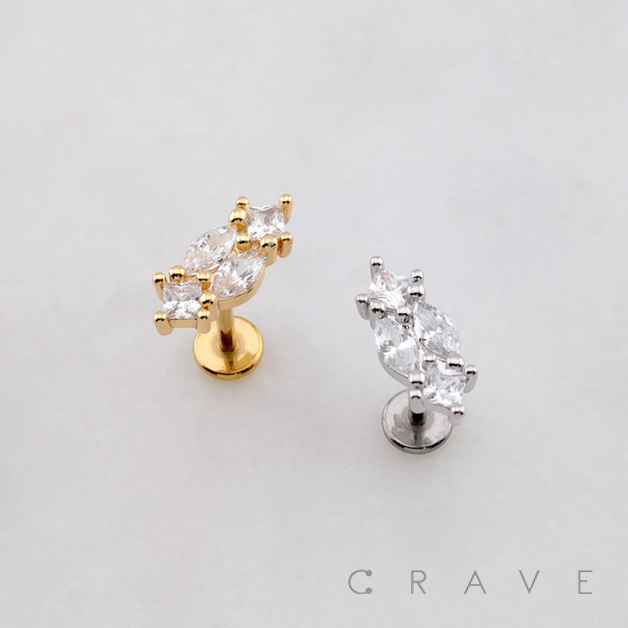 MARQUISE RHOMBUS THREADLESS (PUSH IN) 316L SURGICAL STEEL LABRET SET