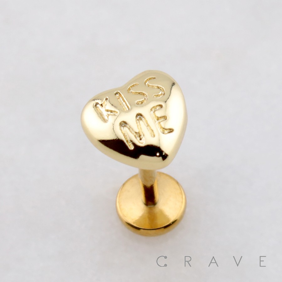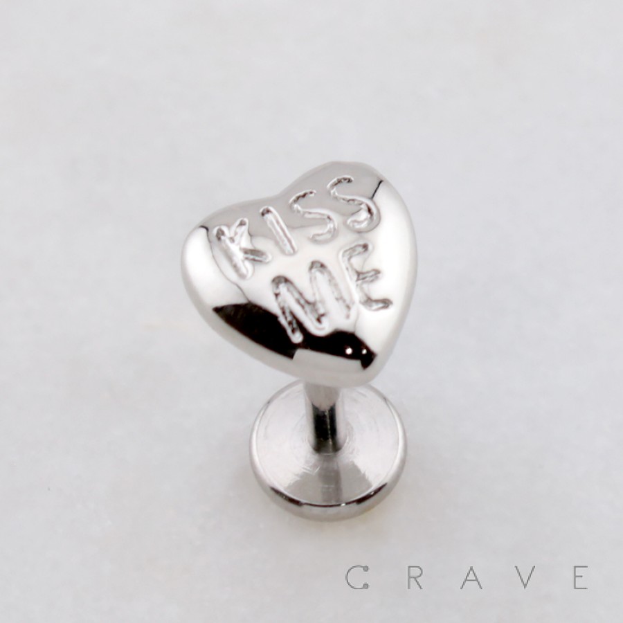 KISS ME HEART SCRIPT STUD THREADLESS (PUSH IN) 316L SURGICAL STEEL LABRET SET