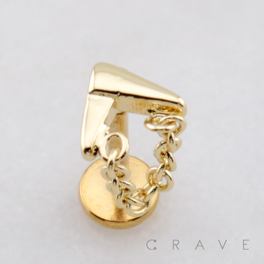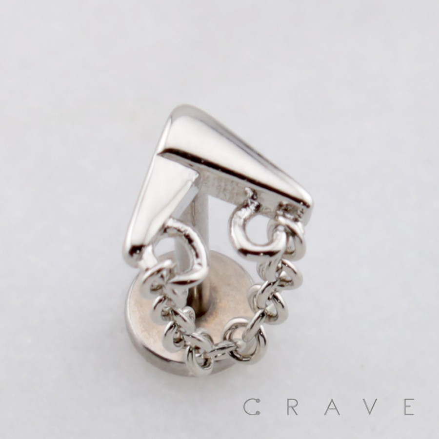 TRIANGLE DIAMOND DRAPE CHAIN CZ STUD THREADLESS (PUSH IN) 316L SURGICAL STEEL LABRET SET