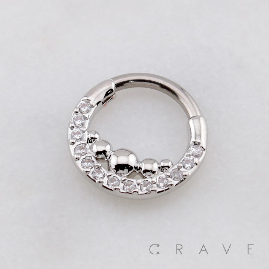 ROW OF POLISHED METAL BEADS (BUBBLES) MULTI CZ ARCH 316L SURGICAL STEEL SEPTUM HINGED SEGMENT RING