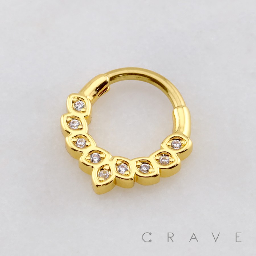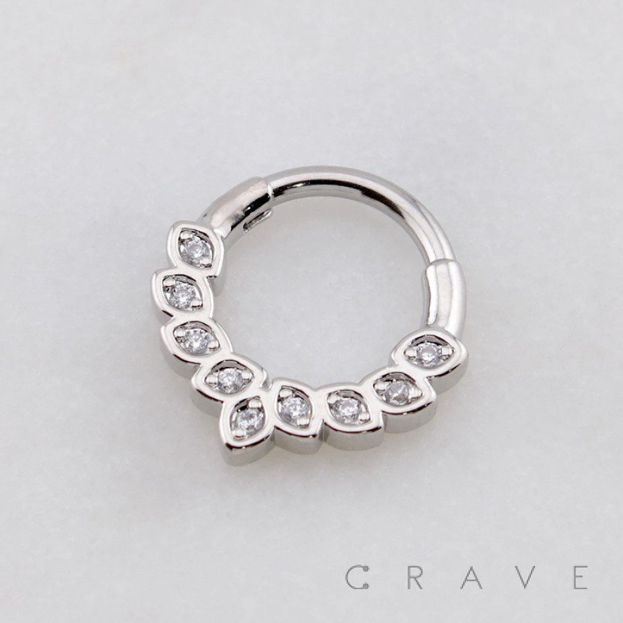 FAN-SHAPED ARRANGEMENT OF SEVEN PEAR-CUT CZ ARCH 316L SURGICAL STEEL SEPTUM HINGED SEGMENT RING
