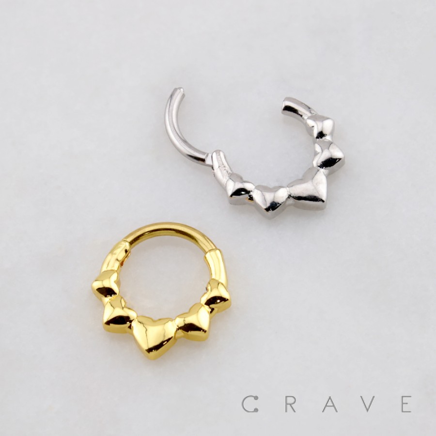 SEAMLESS MULTI HEARTS 316L SURGICAL STEEL SEPTUM HINGED SEGMENT RING