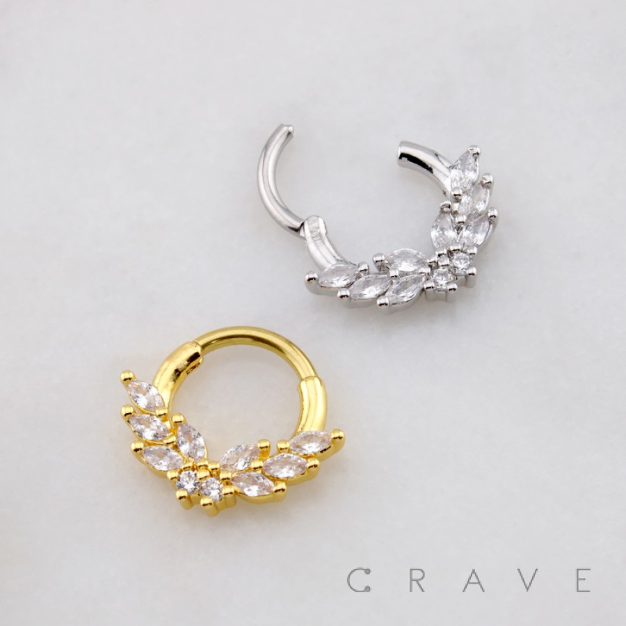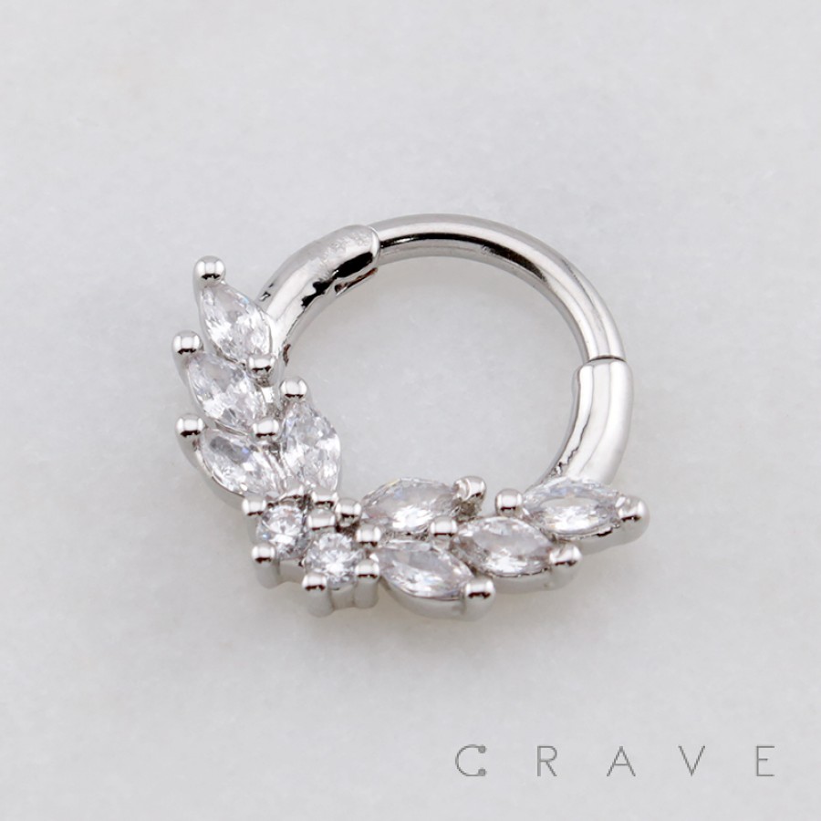 MULTI CZ MARQUISE BUTTERFLY 316L SURGICAL STEEL SEPTUM HINGED SEGMENT RING