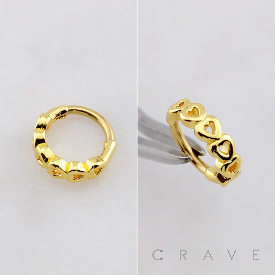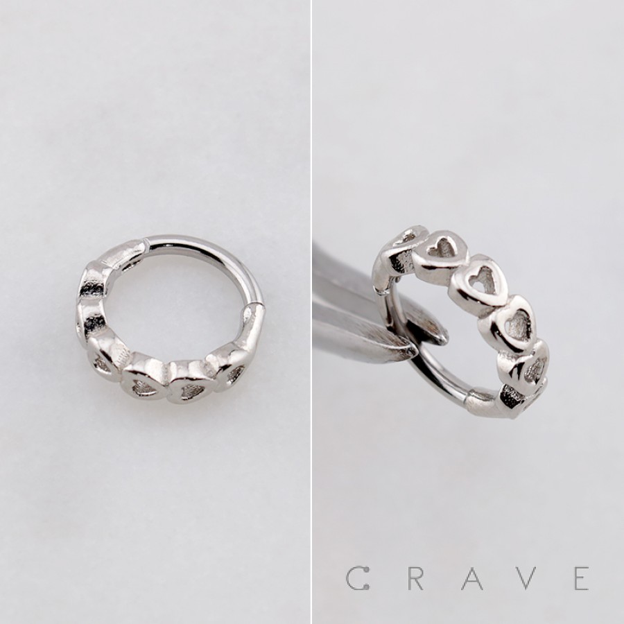 LOVELY OPEN LINE HEARTS 316L SURGICAL STEEL SEPTUM HINGED SEGMENT RING