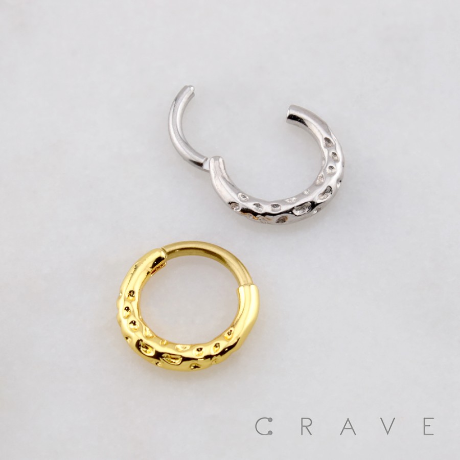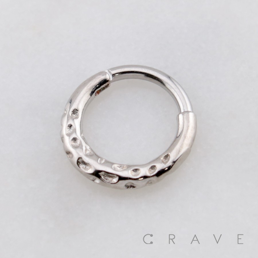 HAMMERED RIM TEXTURE 316L SURGICAL STEEL SEPTUM HINGED SEGMENT RING
