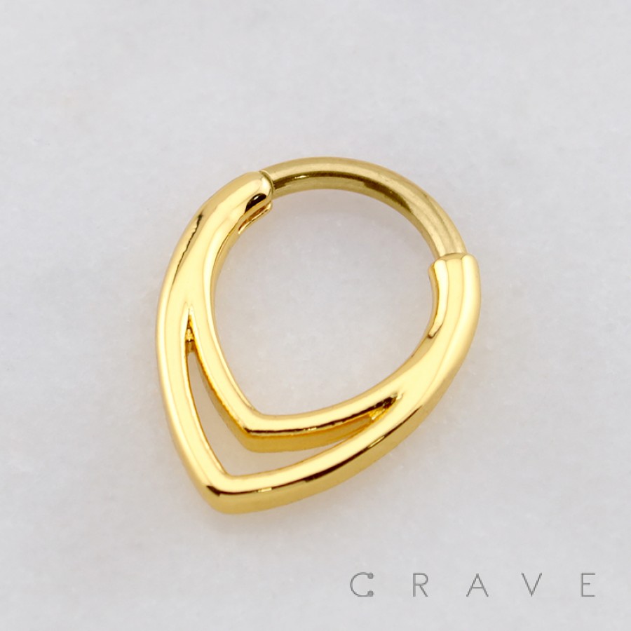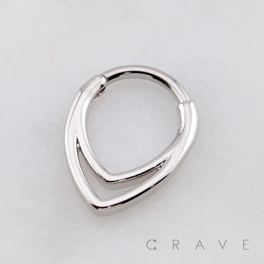DOUBLE LINED TEARDROP CHEVRON 316L SURGICAL STEEL SEPTUM HINGED SEGMENT RING
