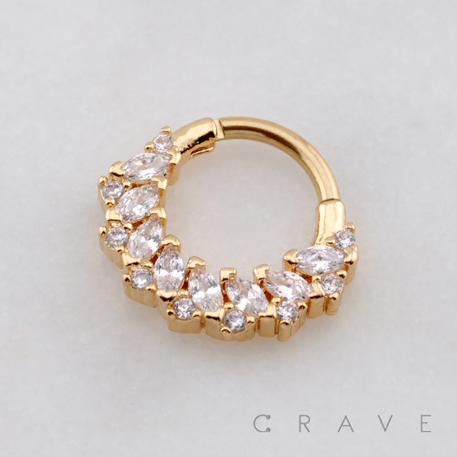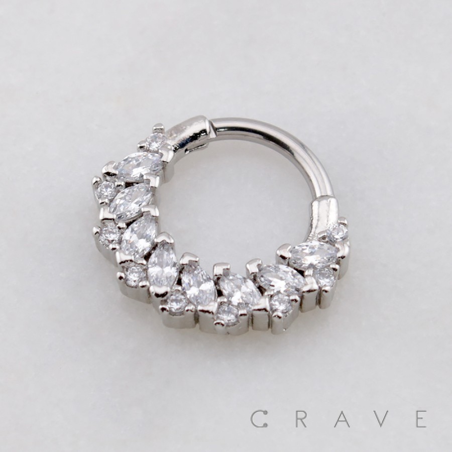 MULTI CZ MARQUISE CASCADE 316L SURGICAL STEEL SEPTUM HINGED SEGMENT RING