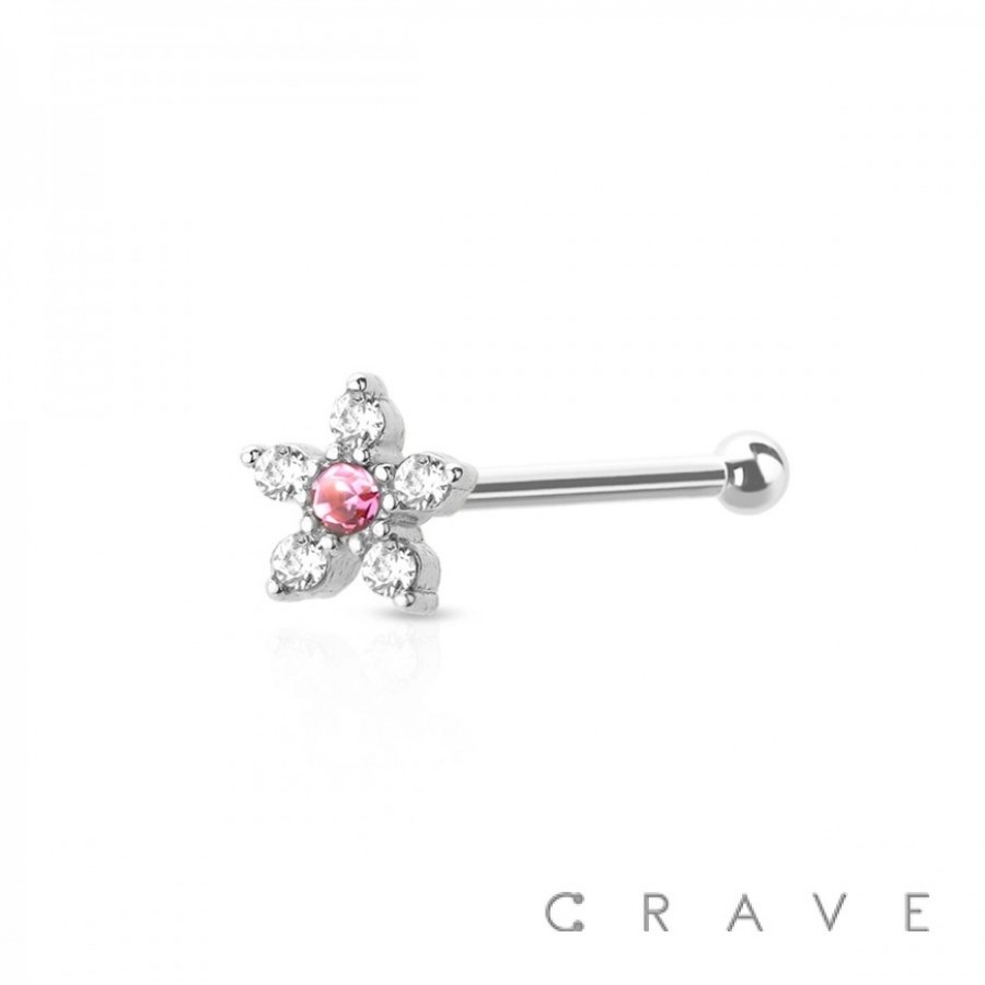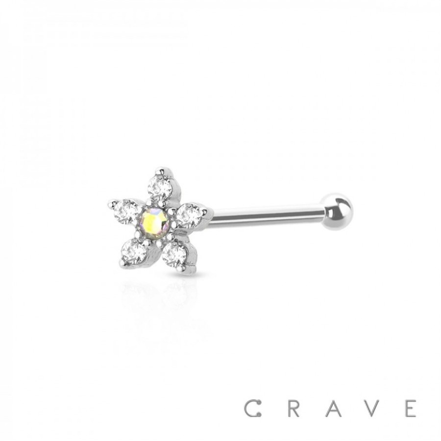 5 CZ FLOWER TOP 316L SURGICAL STEEL NOSE BONE STUD