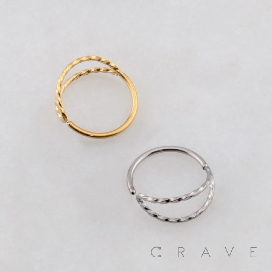 TWISTED ROPE HINGED DOUBLE LINE NOSE HOOP 316L SURGICAL STEEL
