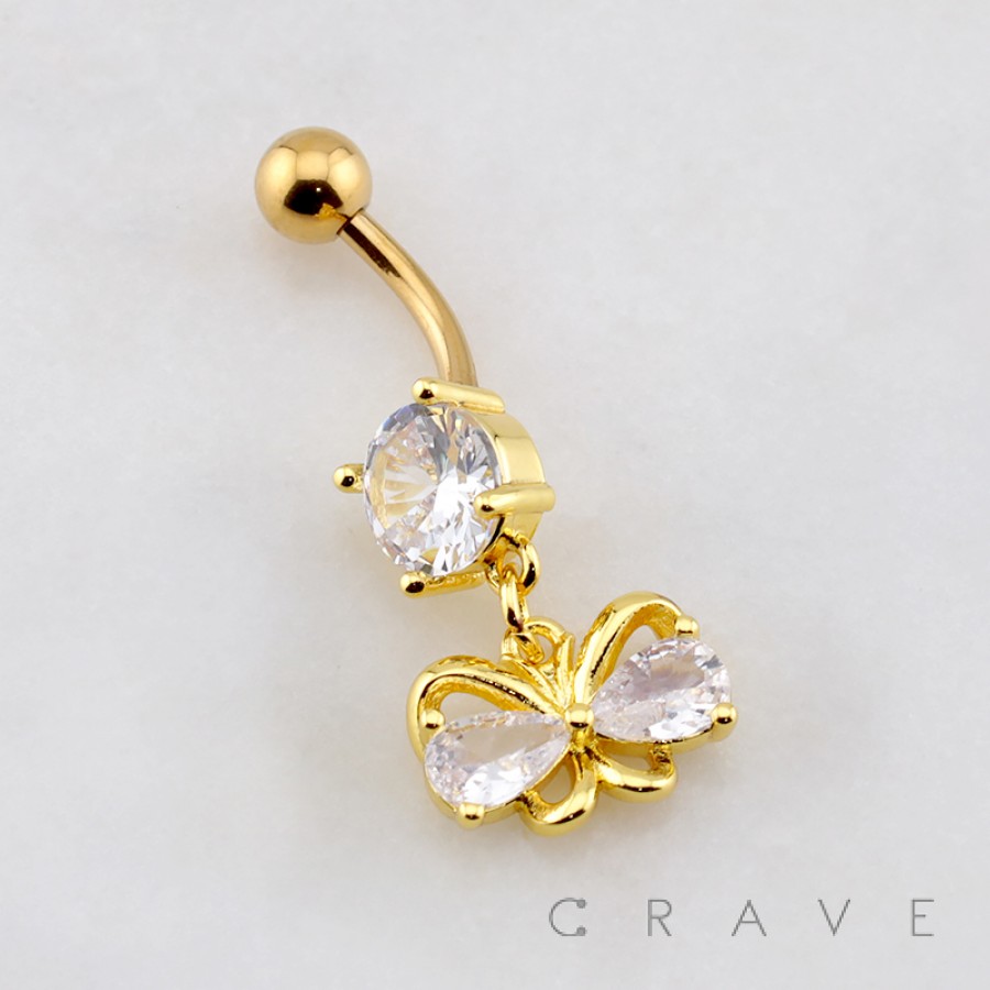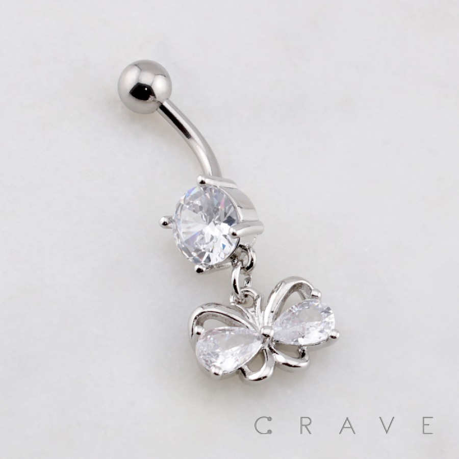 ROUND BUTTERFLY DROP BELLY BUTTON NAVEL RING 316L SURGICAL STEEL