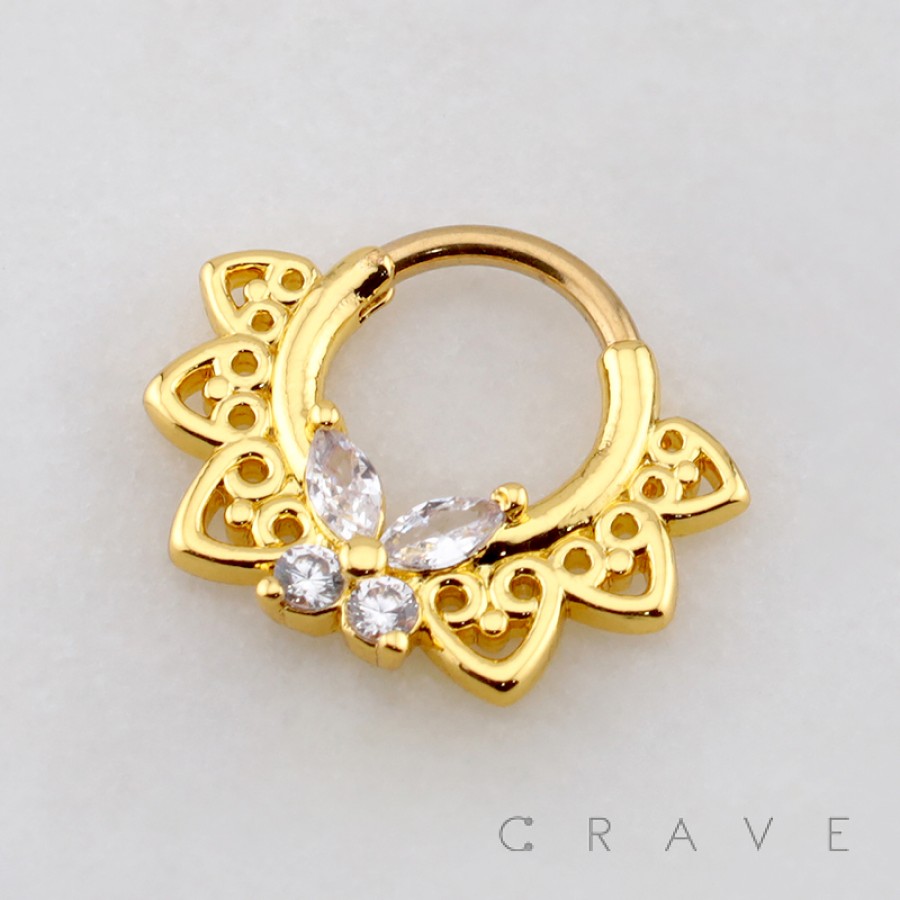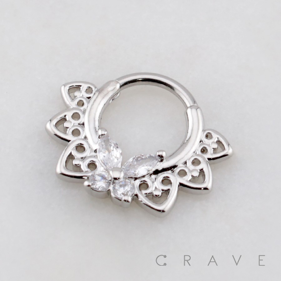 CUT-OUT HEARTS CZ MARQUISE BUTTERFLY 316L SURGICAL STEEL SEPTUM HINGED SEGMENT RING
