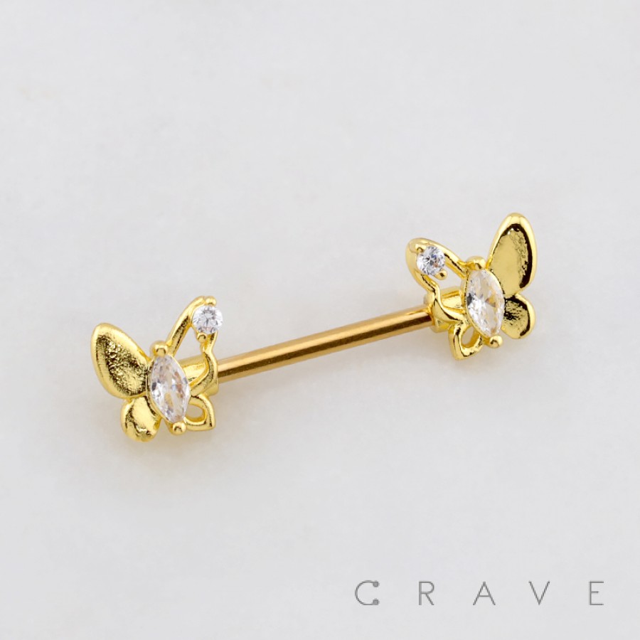 MARQUISE BUTTERFLY CZ 316L SURGICAL STEEL NIPPLE RING