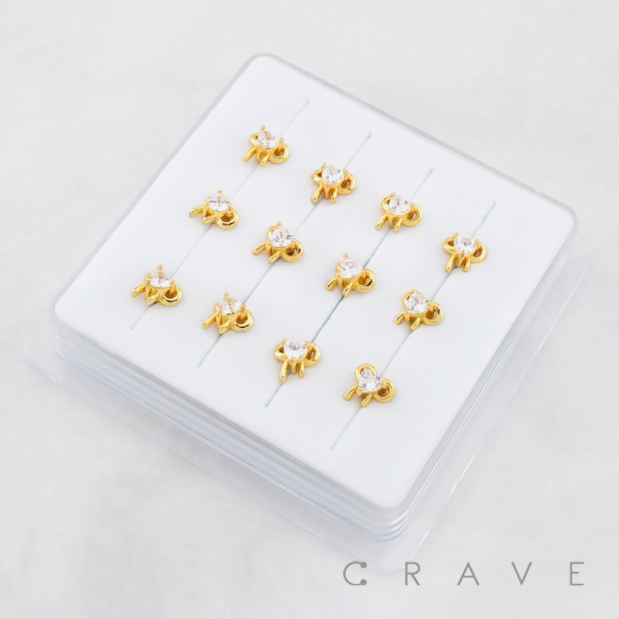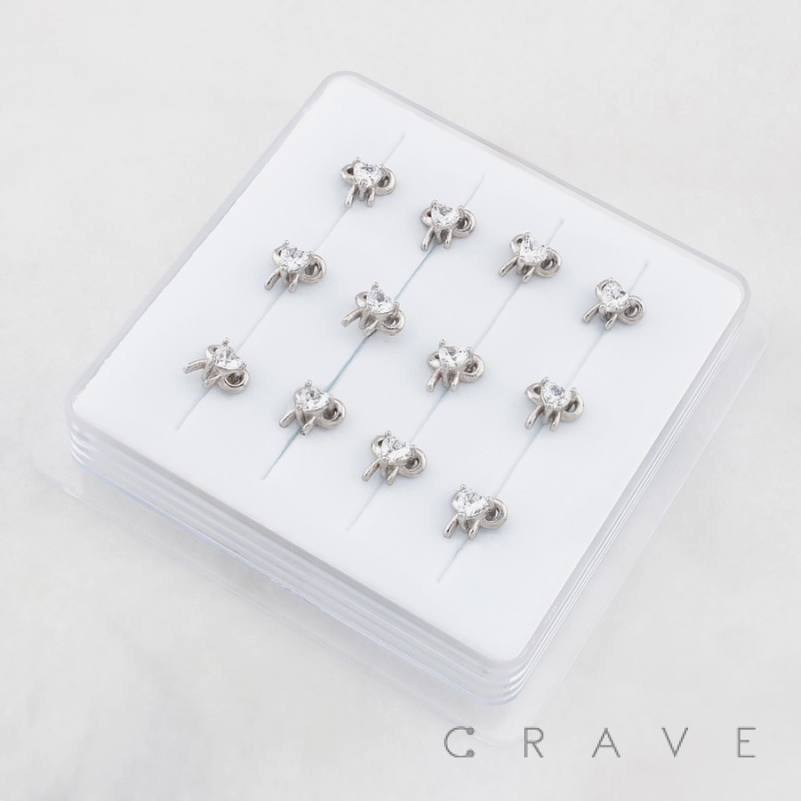 RIBBON HEART WITH BEZEL CZ 316L SURGICAL STEEL L-SHAPE NOSE RING BOX
