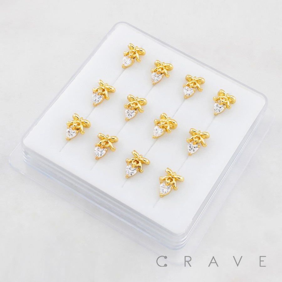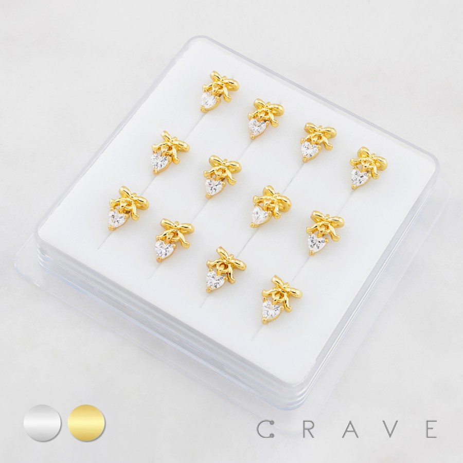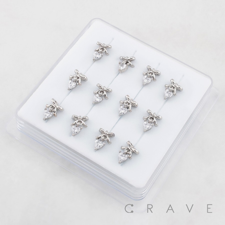 RIBBON DANGLE HEART WITH BEZEL CZ 316L SURGICAL STEEL L-SHAPE NOSE RING BOX