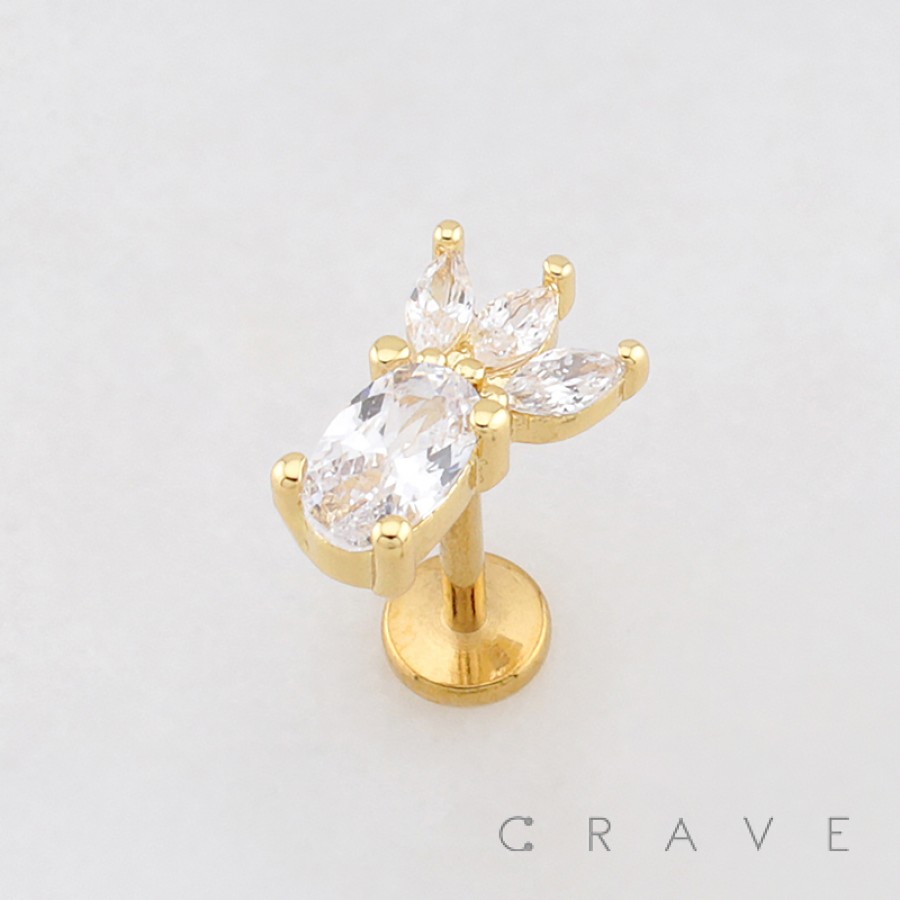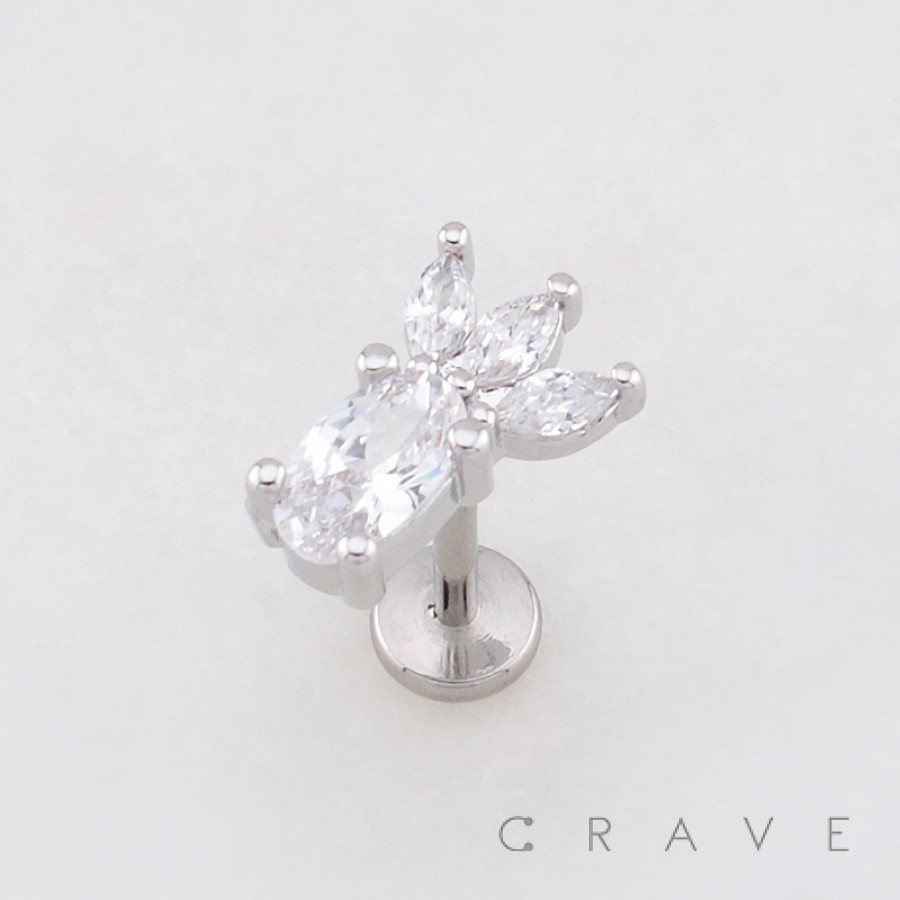 LEAF DROP MARQUISE FAN CZ THREADLESS (PUSH IN) 316L SURGICAL STEEL LABRET SET