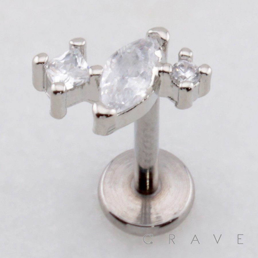 CZ MARQUISE SQUARE ROUND BEZEL THREADLESS (PUSH IN) 316L SURGICAL STEEL LABRET SET
