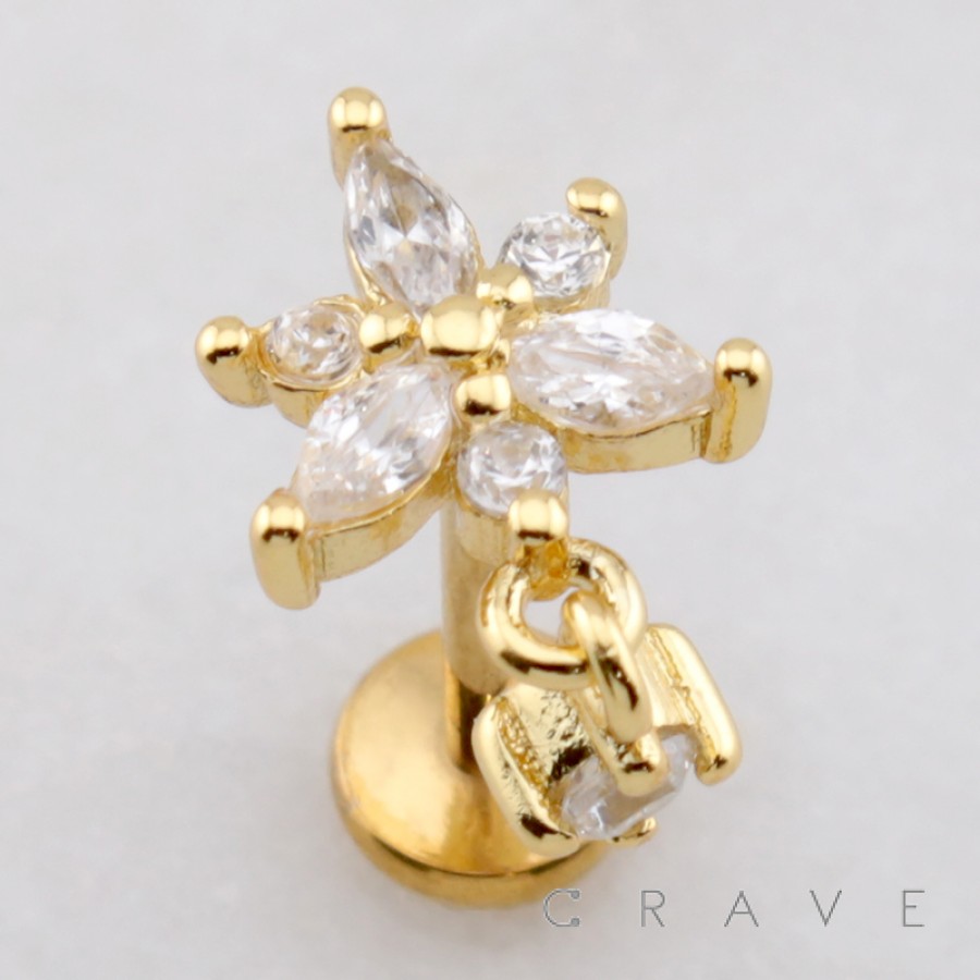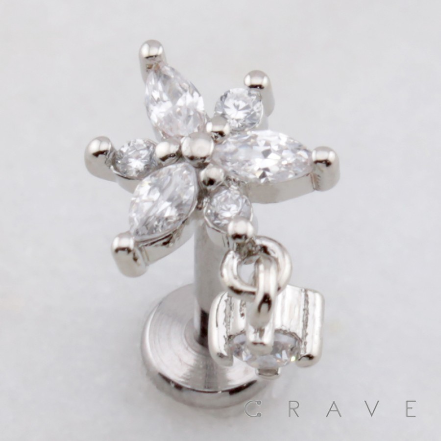 MULTI MARQUISE FLOWER BEZEL CZ DANGLE THREADLESS (PUSH IN) 316L SURGICAL STEEL LABRET SET
