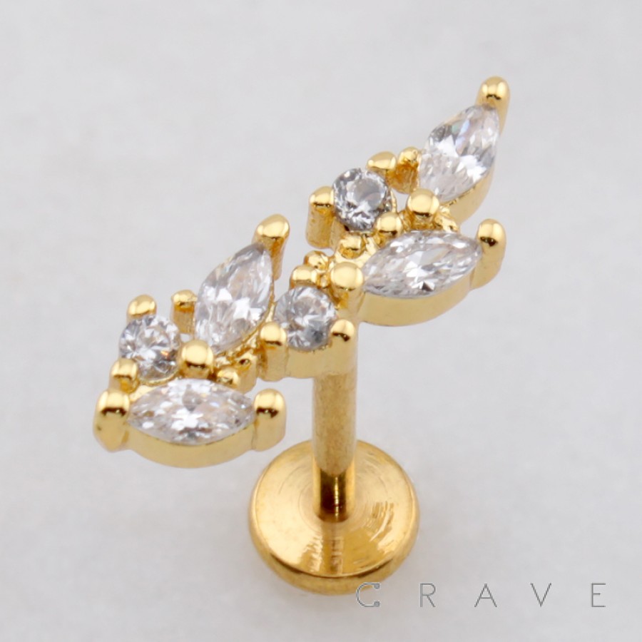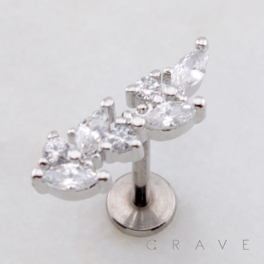MULTI MARQUISE BRANCH LEAVES LEAF THREADLESS (PUSH IN) 316L SURGICAL STEEL LABRET SET