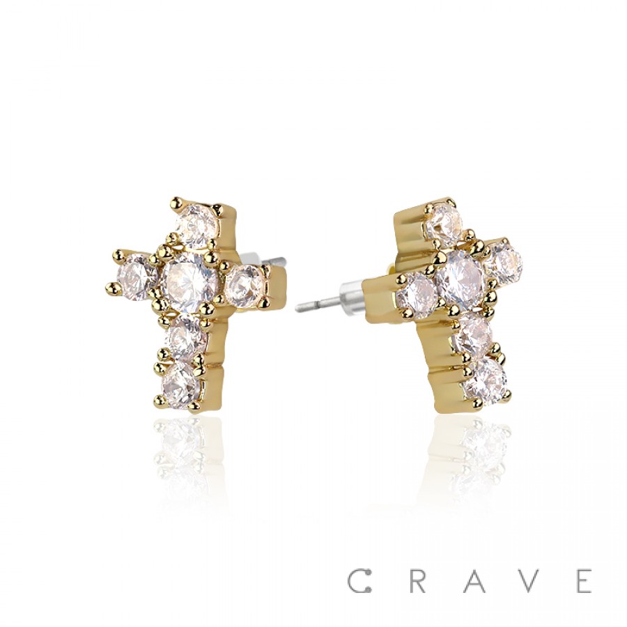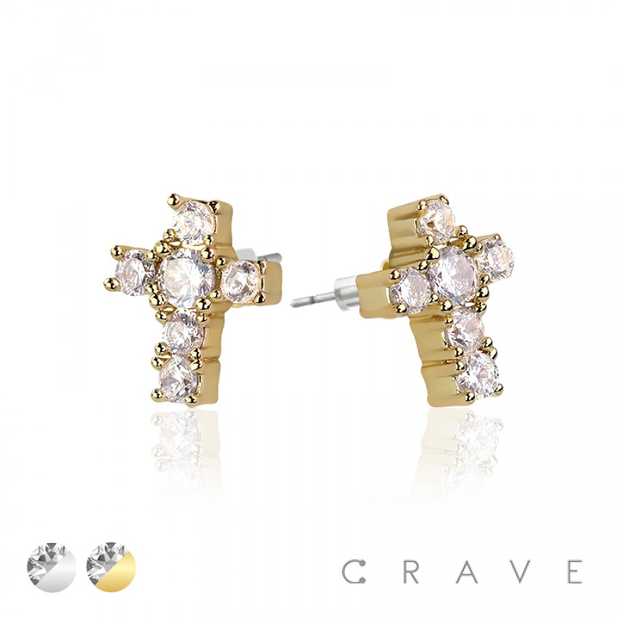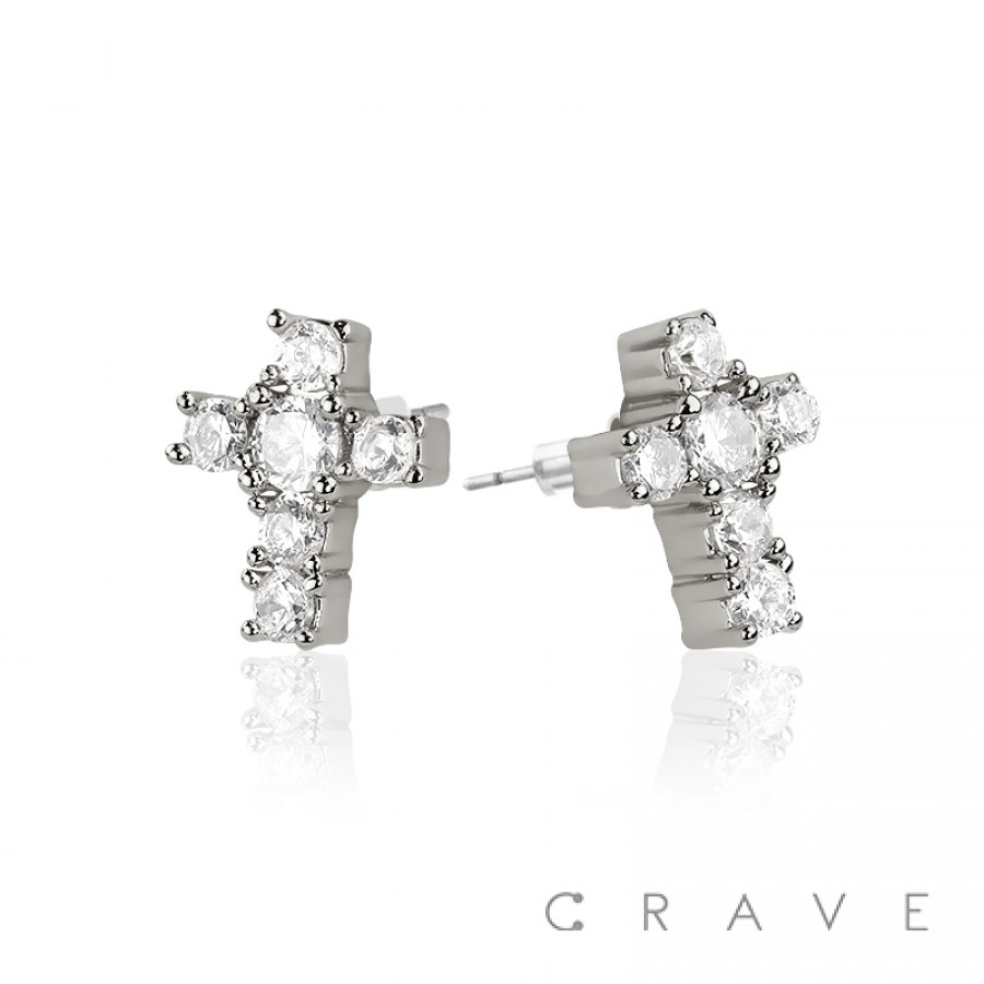 CROSS PAIR OF MICRO PAVED STAINLESS STEEL PIN EARRINGS