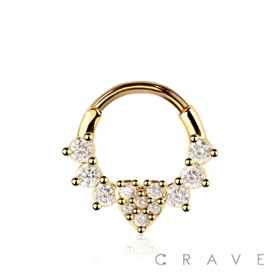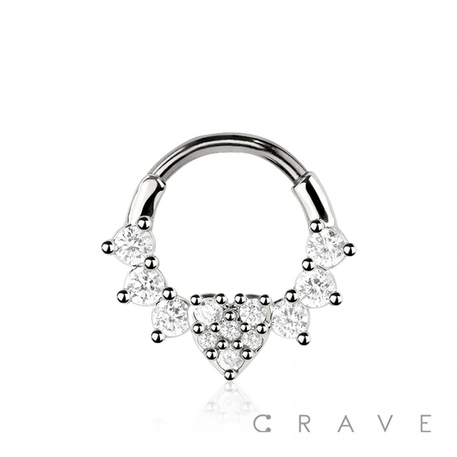 316L SURGICAL STEEL CZ HEART MULTI HEART SEPTUM HINGED SEGMENT HOOP RING