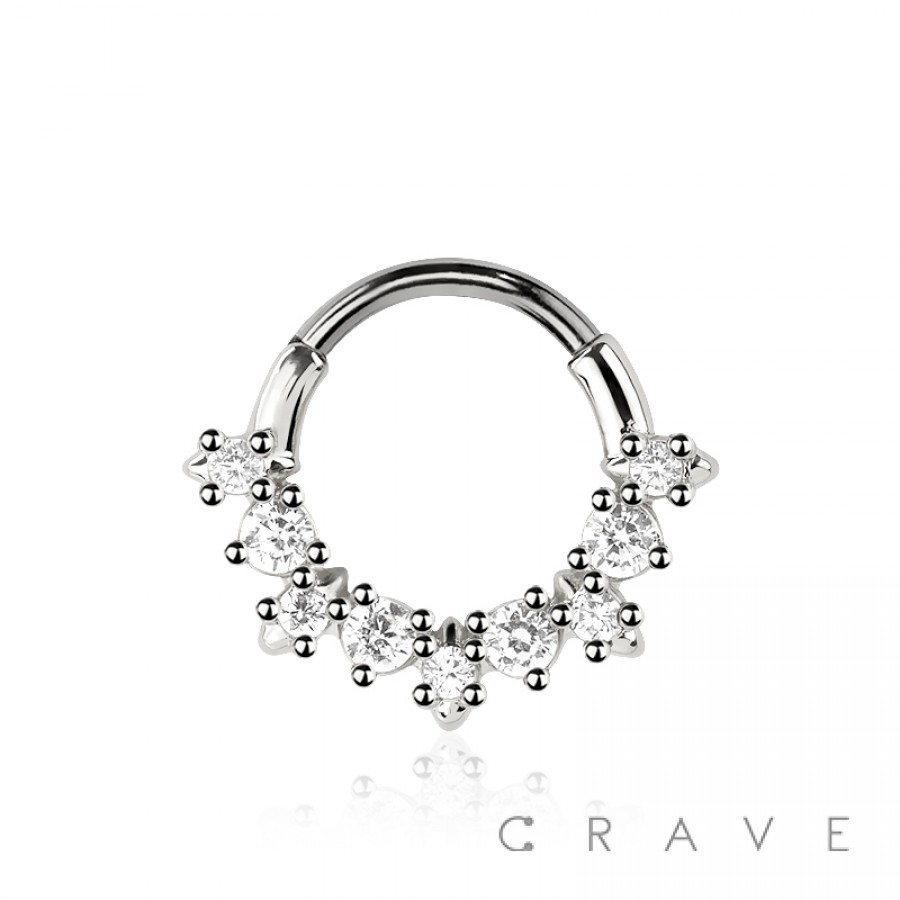 316L SURGICAL STEEL MULTI ROUND CZ SEPTUM HINGED SEGMENT HOOP RING