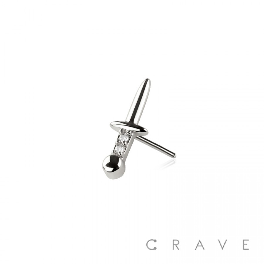 316L SURGICAL STEEL THREADLESS PUSH IN MULTI CZ DAGGER TOP PART
