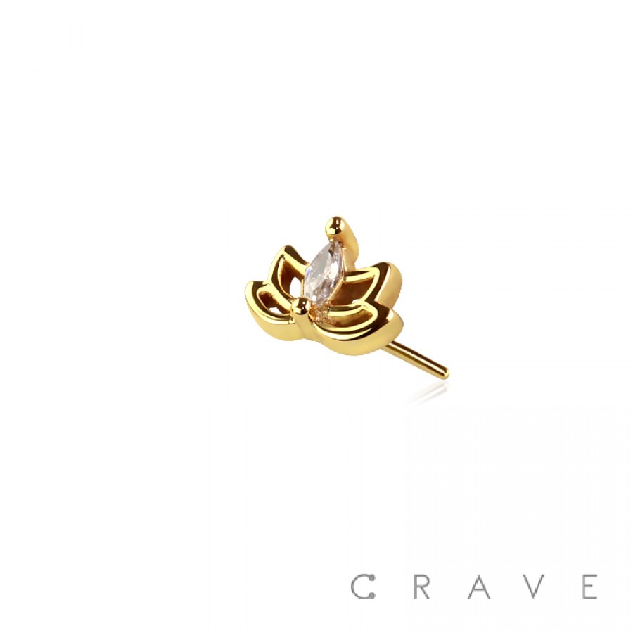 316L SURGICAL STEEL THREADLESS PUSH IN CZ LOTUS FLOWER TOP PART