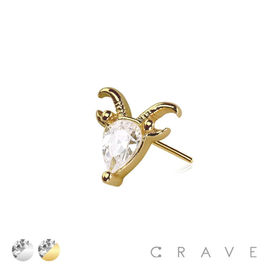 316L SURGICAL STEEL THREADLESS PUSH IN CZ GOAT TOP PART (ONLY)