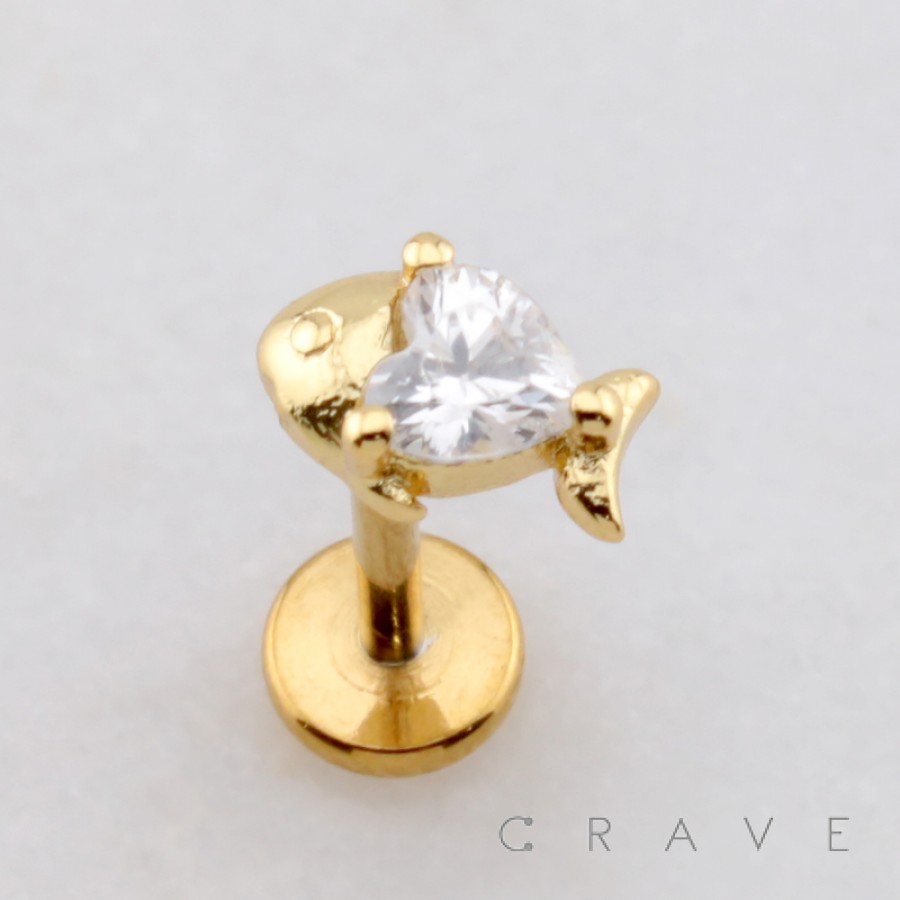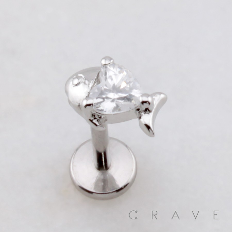 AQUATIC SEA FISH CZ STUD THREADLESS (PUSH IN) 316L SURGICAL STEEL LABRET SET