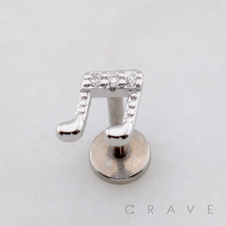 SONG MUSIC NOTE CZ NOTE THREADLESS (PUSH IN) 316L SURGICAL STEEL LABRET SET