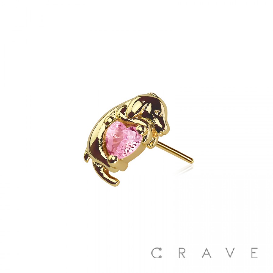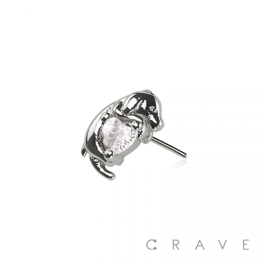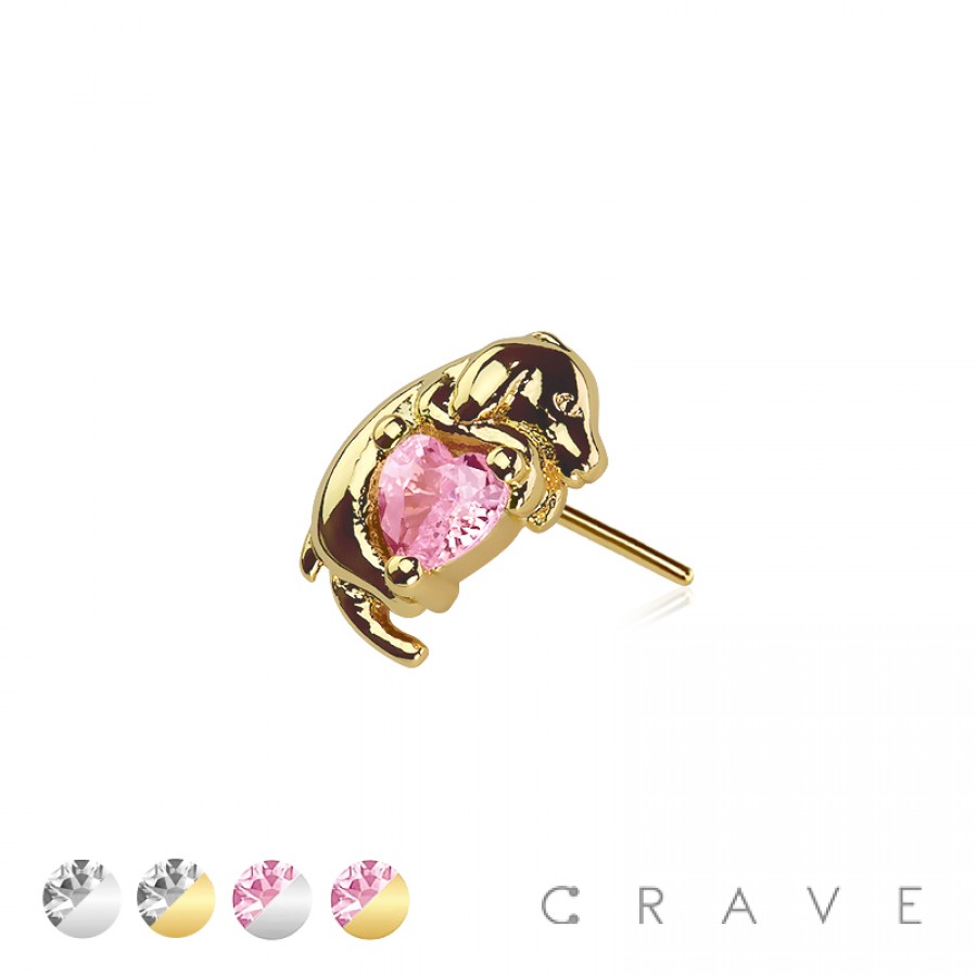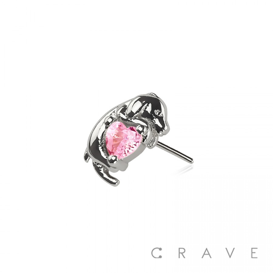 316L SURGICAL STEEL THREADLESS PUSH IN CZ HEART DOG PUPPY TOP PART (ONLY)