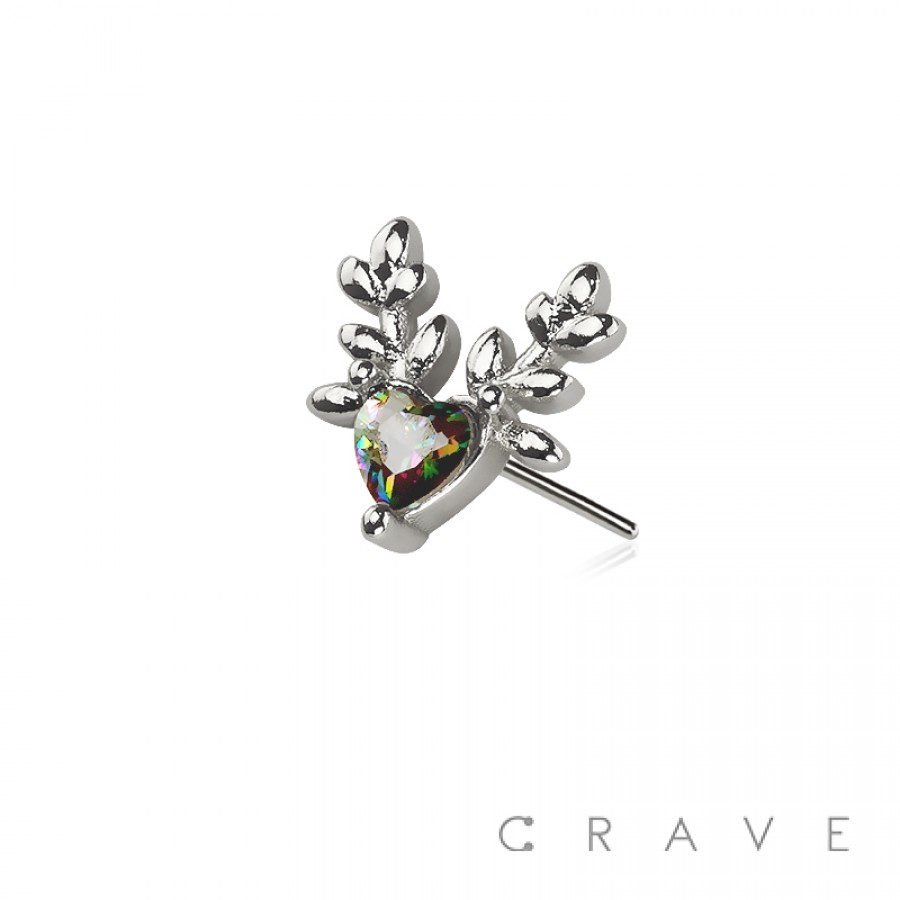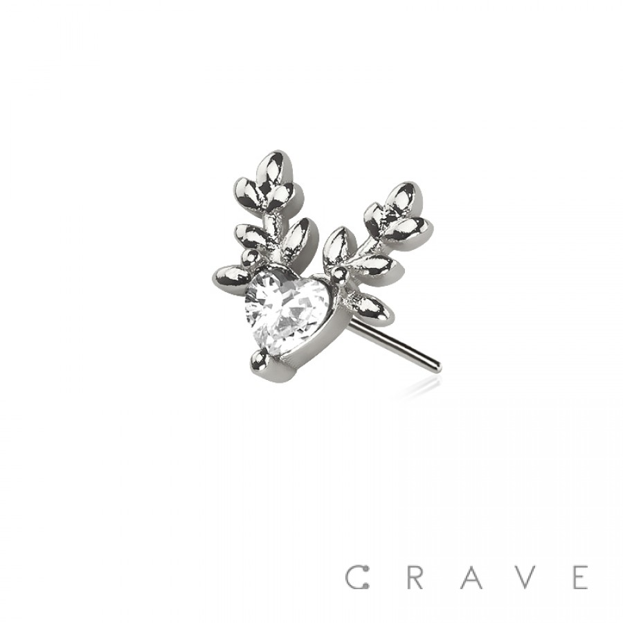 316L SURGICAL STEEL THREADLESS PUSH IN CZ DEER HEART TOP PART (ONLY)
