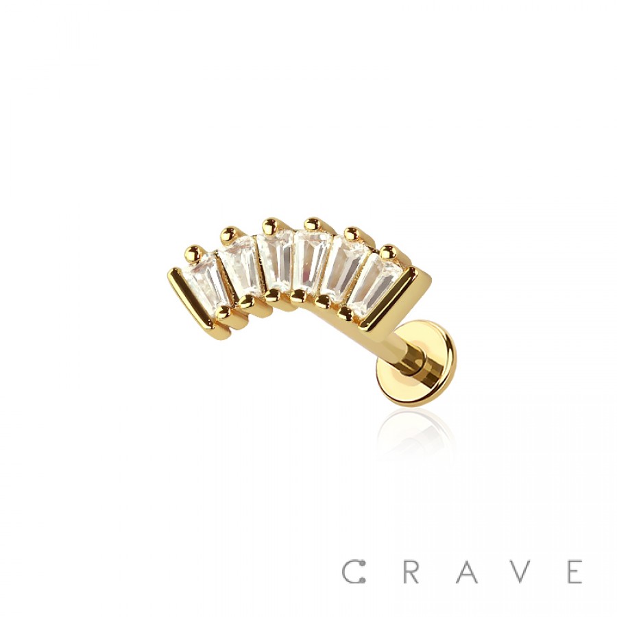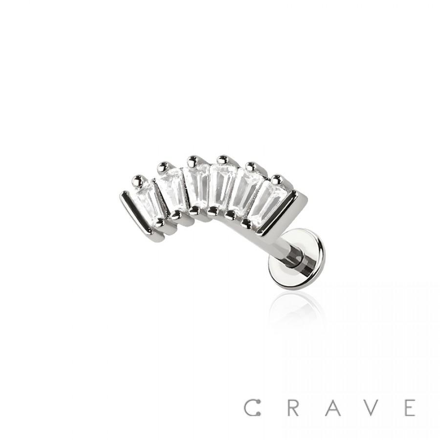 MULTI CZ BAGUETTE ARCH THREADLESS (PUSH IN) 316L SURGICAL STEEL LABRET SET